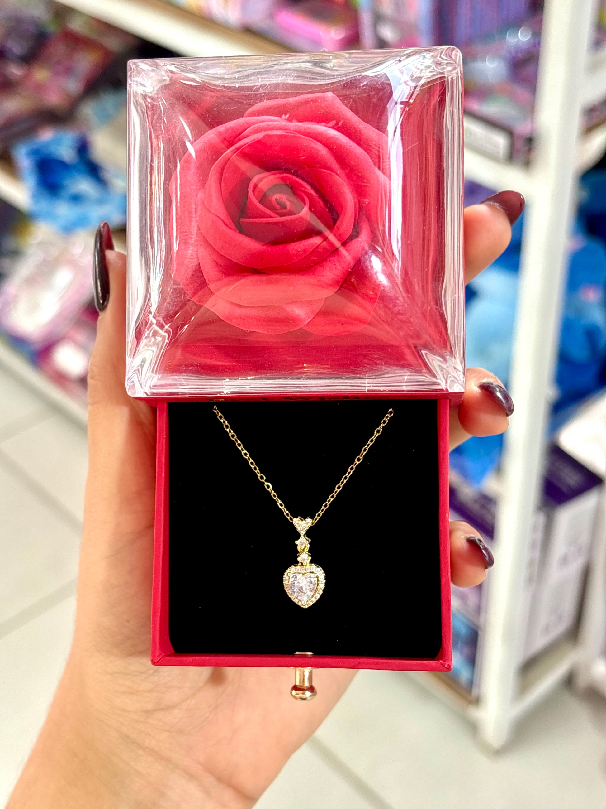 Boite cadeau avec tiroir et fleur et collier en acier inoxydable - Girlzbox